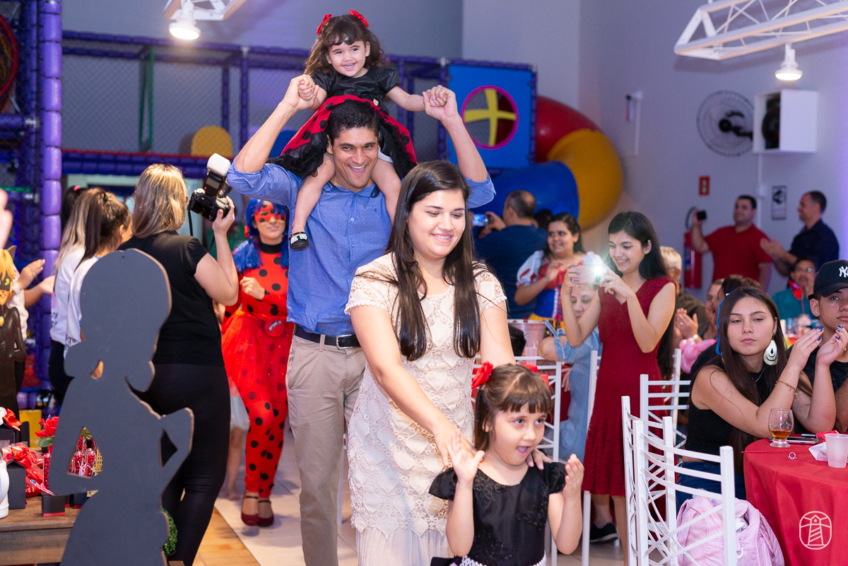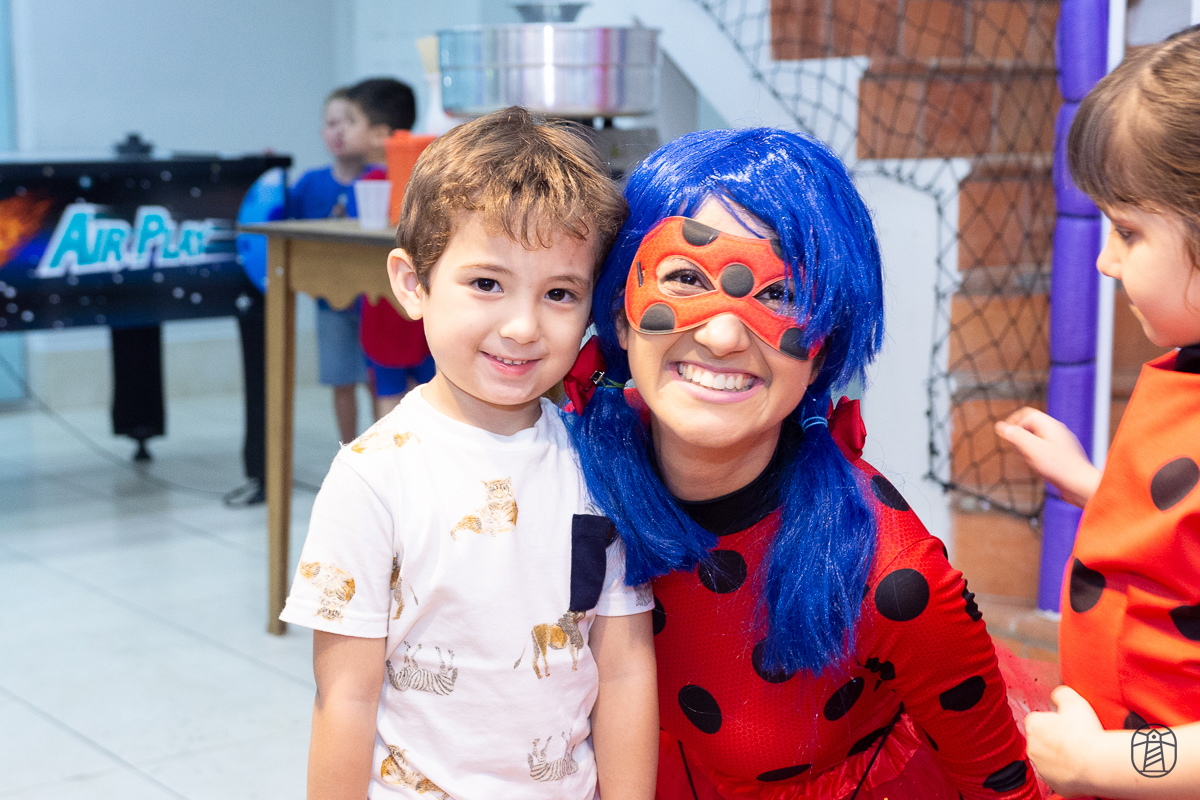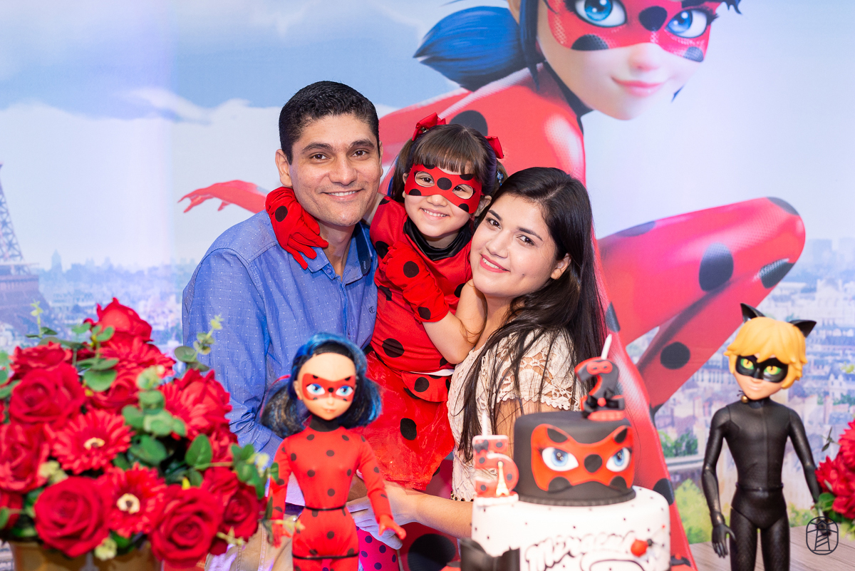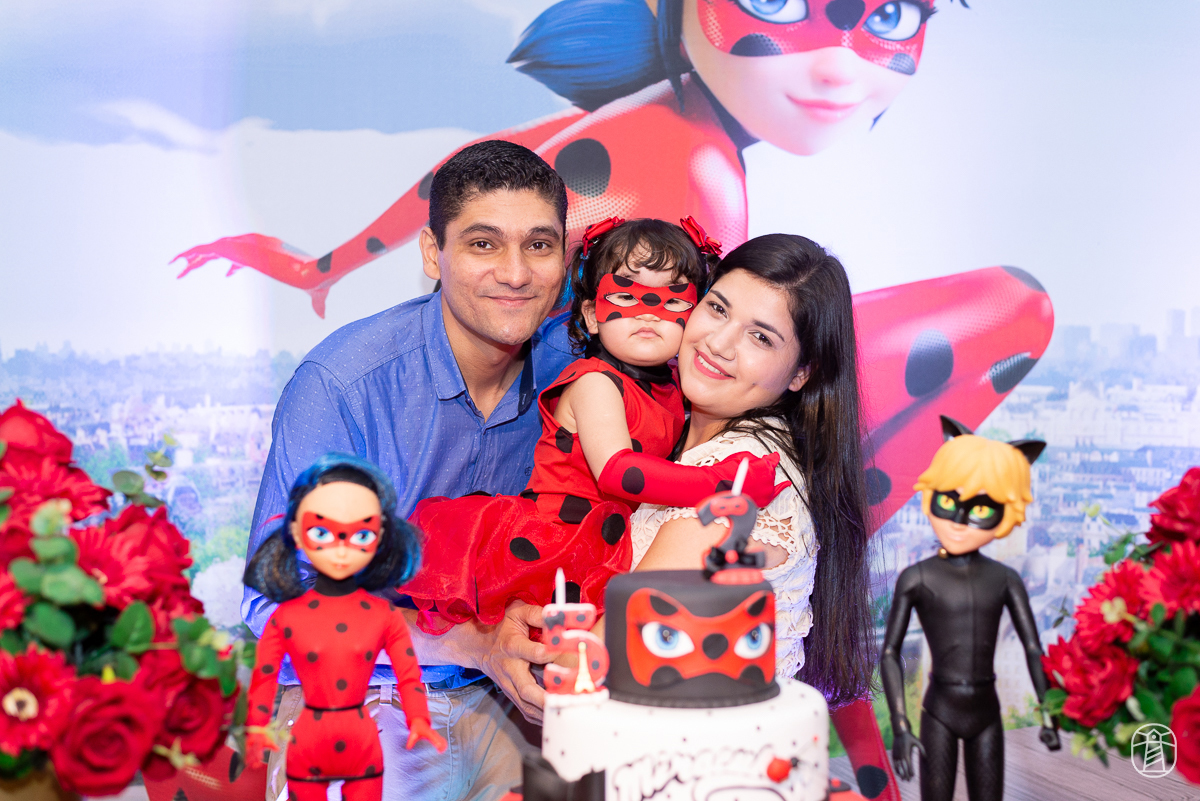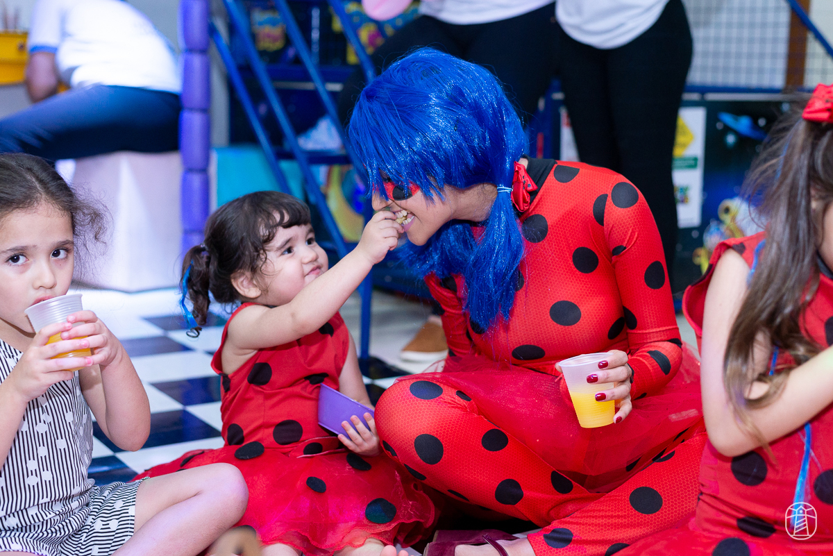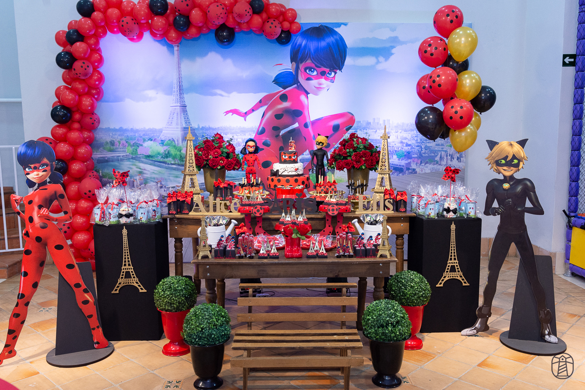 Diretamente de Paris, a heroína Ladybug foi a convidada especial na festa das irmãs Elis e Alice.
